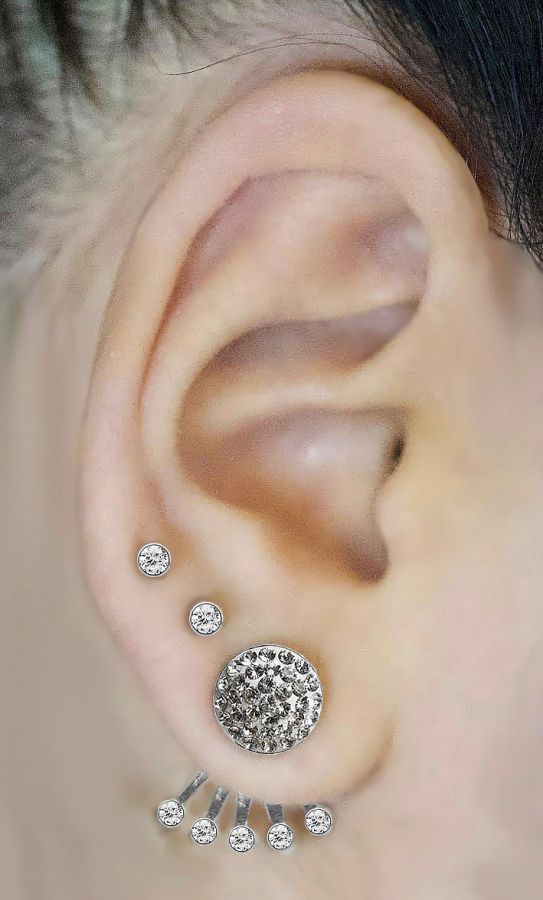 ohrringe aus chirurgischem stahl, verziert mit funkelnden hochwertigen weißen kristallen, ergänzt durch fünf elegante hängende elemente, die ein stilvolles und dynamisches lichtspiel erzeugen.