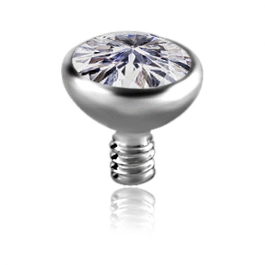 very small sphere with external thread for microdermal, bars, labret. Entirely made of titanium, this replacement is equipped with a very bright premium crystal. The sphere with 0.8 mm thread is compatible with piercings with an external thickness of 1.2 mm while the sphere with 1.2 mm thread is compatible with piercings with an external thickness of 1.6 mm.