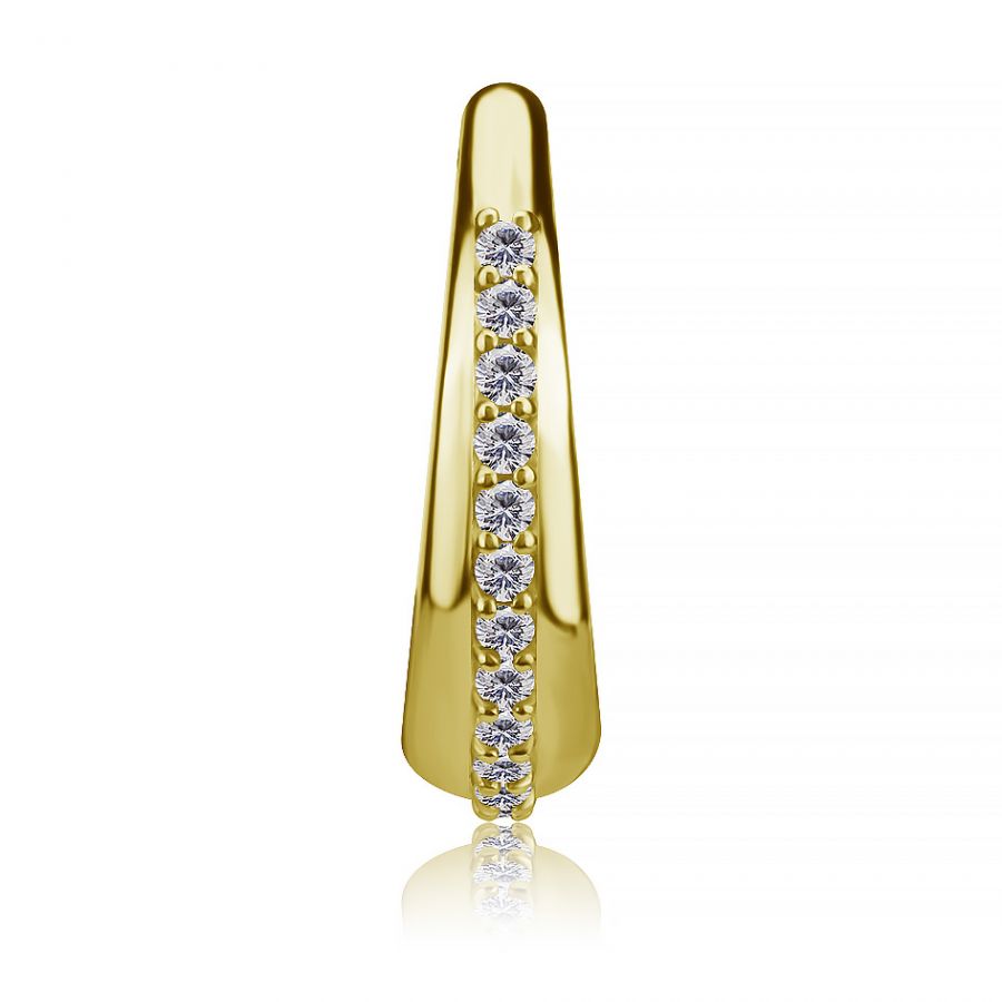 these earrings, made from an 18k gold-plated chrome–cobalt alloy, offer a perfect balance of strength and lightness. Their metal setting, both solid and elegant, highlights a sequence of white premium cubic zirconia crystals, precisely arranged to enhance their brilliance.