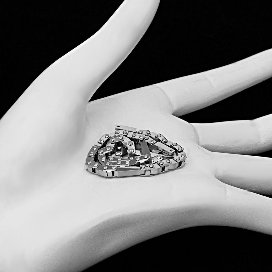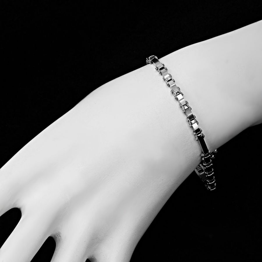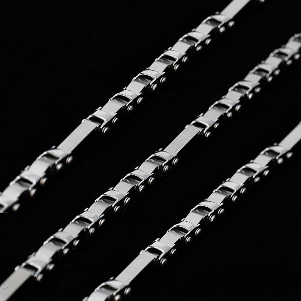 bracelet made of high-quality surgical steel, composed of numerous articulated segments that ensure comfort and flexibility on the wrist. One of these elements can be easily removed, allowing the length to be adjusted to suit individual needs. Perfect for those who wish to wear a discreet and elegant piece of jewelry without giving up a refined and detail-oriented style.