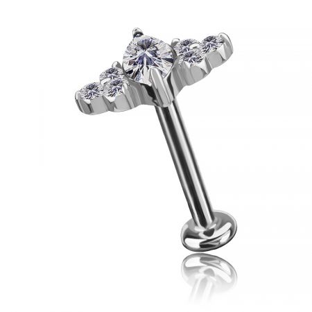 The precious labret with internal thread in titanium and 3 crystals in premium with external thread that we offer you can’t miss among your favorite accessories, to wear to ear, such as helix and tragus, or to lip!