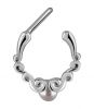 Septum clicker for elegant girls: this jewel of surgical steel is decorated with a wonderful synthetic pearl. Perfect for the septum piercing, it is also used for some ear parts like helix.