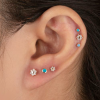 jewel for tragus, lip, lobe and helix piercing, made in 18k yellow gold with a small flower with six white crystals.