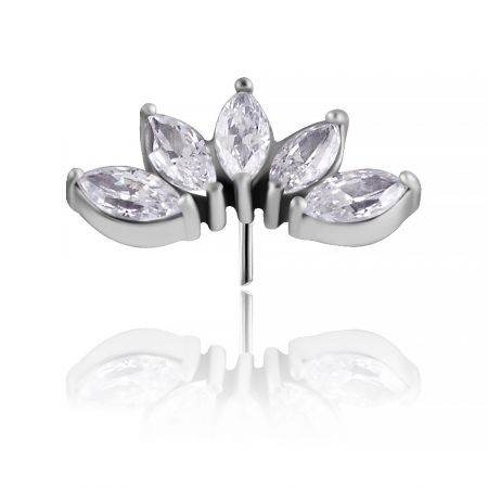 recambio apto para barras y labrets con rosca interior. Este componente está fabricado en acero quirúrgico con 4 circonitas cúbicas blancas.