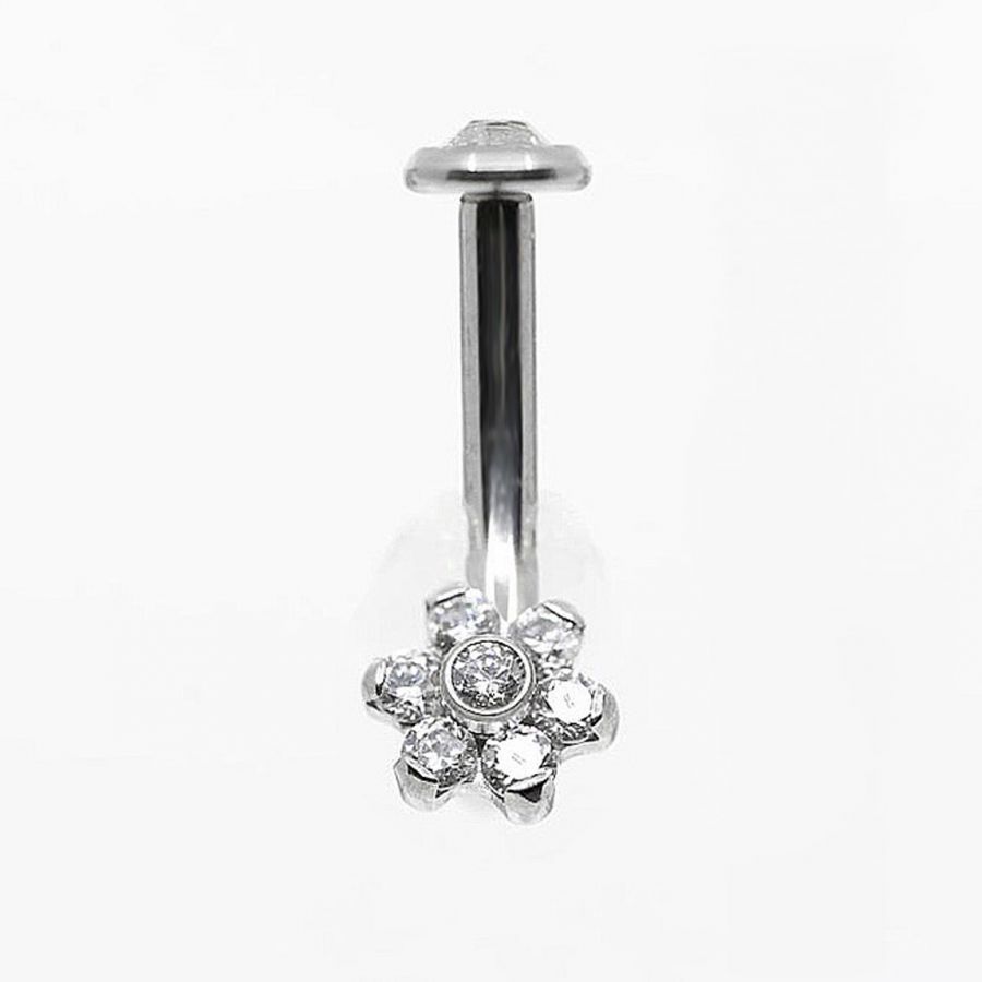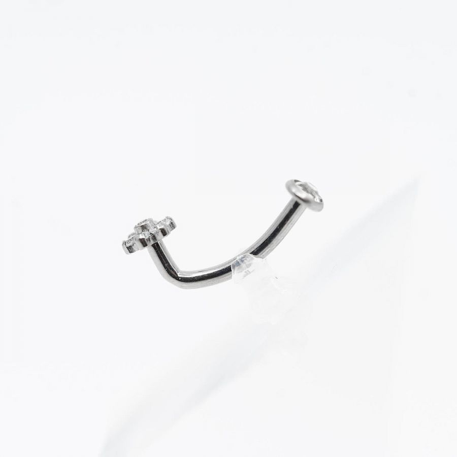 este piercing christina de titanio cuenta con un adorno en forma de flor con brillantes cristales blancos de circonita cúbica premium y es mucho más que una simple joya: es un detalle refinado, pensado para quienes desean realzar su feminidad con elegancia y carácter.