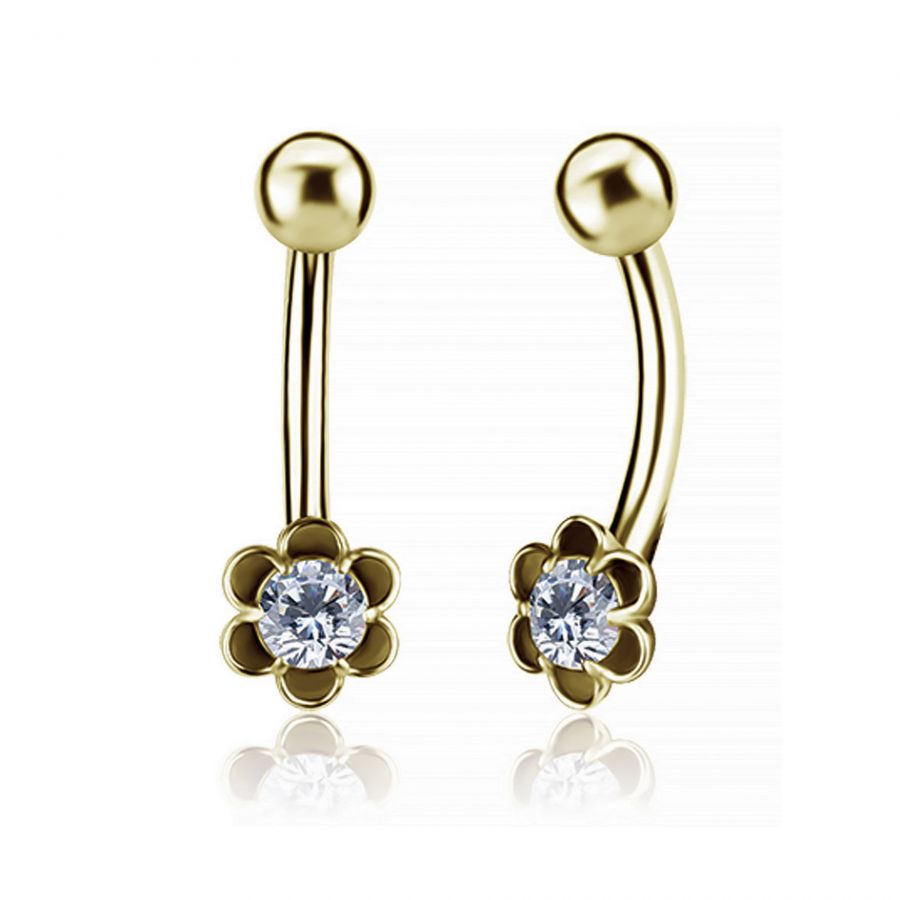 PIERCING NOMBRIL INTERNAL PLAQUÉ OR AVEC FLEUR EN CRISTAL
