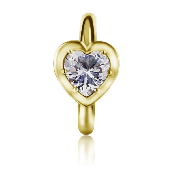 piercing per ombelico in lega di cromo-cobalto placcato oro 18k, 100% nichel free, per garantire la massima sicurezza e comfort sulla pelle. Il pratico meccanismo a clicker rende l’applicazione semplice e stabile, ideale per un uso quotidiano. Il cuore in cubic zirconia, luminoso e raffinato, dona un tocco di eleganza e brillantezza che cattura ogni sguardo.